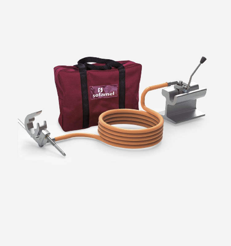 Integrated earthing equipment for underground tramway rails. With one PC clamp to enable earthing of lines for repair work. According to IEC 61230 standard.